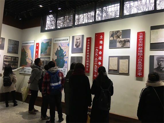 支部党员们在有序瞻仰完烈士纪念碑后,来到革命历史陈列馆。首先映入眼帘的就是已故全国政协主席李先念同志题写的“革命烈士永垂不朽”的碑名,陈列馆中展陈自辛亥革命至解放前夕蚌埠市革命发展的历史,形象地再现了我党当时的光辉历程。支部党员们纷纷驻足观看,感受先辈们的崇高精神,追寻红色记忆,明确肩负的重大责任。